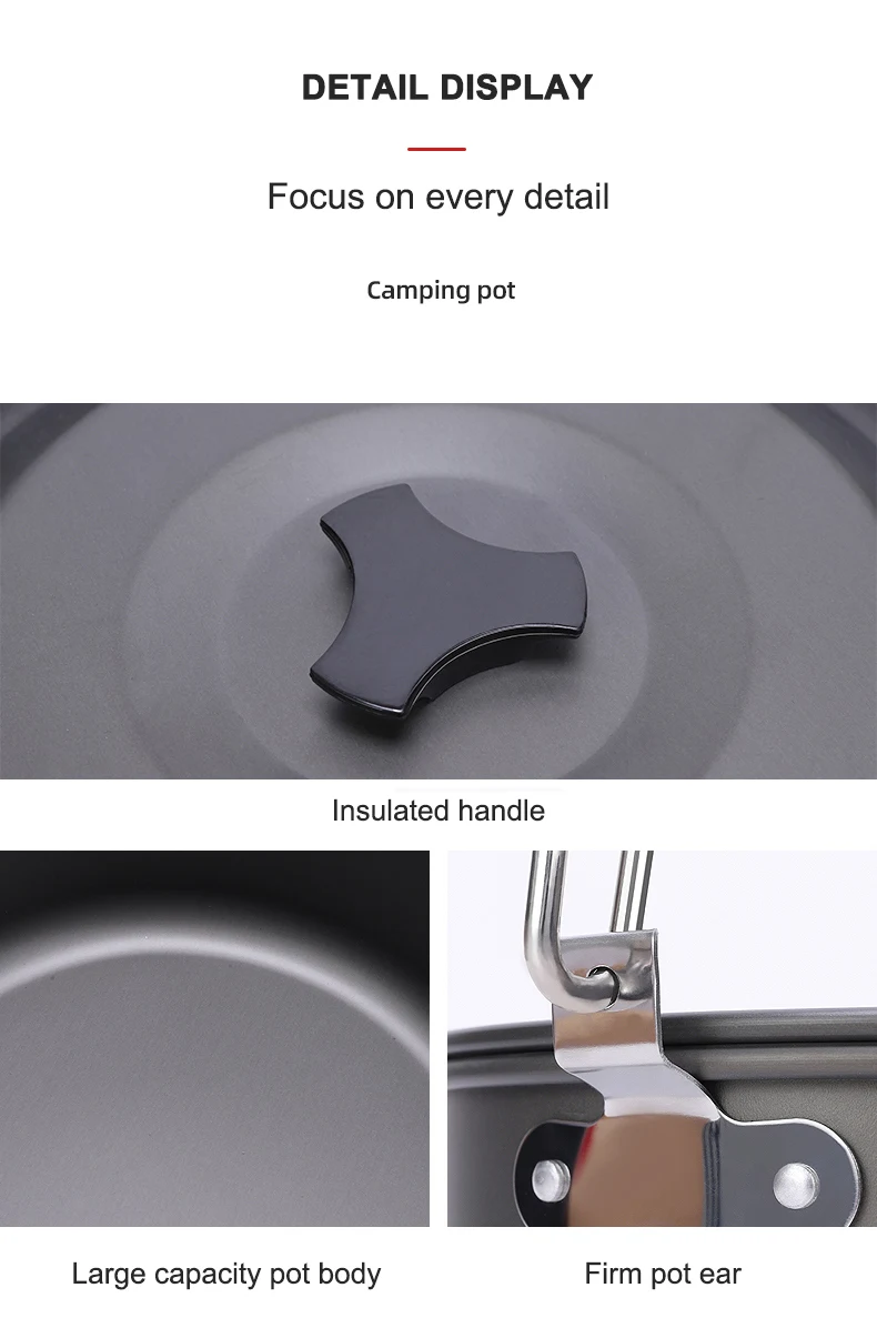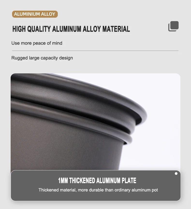 Manufactured in Mainland China, this Camping Cookware adheres to high-quality standards, ensuring durability and reliability in outdoor settings.
