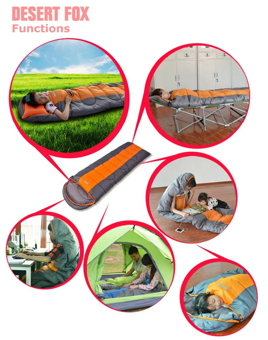 ➤Temperature Scale: Our sleeping bag suits almost all seasons. Tighten the rope when feeling cold, to enhanced warmth. Pull off the foot area zippers when feeling hot, it can improve air permeability, adjust to what you like. Summer type comfort temperature over 25℃, spring & autumn type comfort temperature about 10℃~20℃, winter type comfort temperature about 0~5℃~10℃.