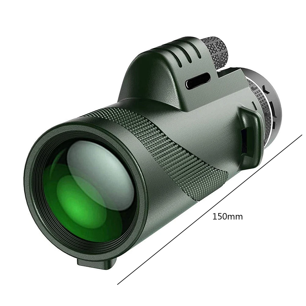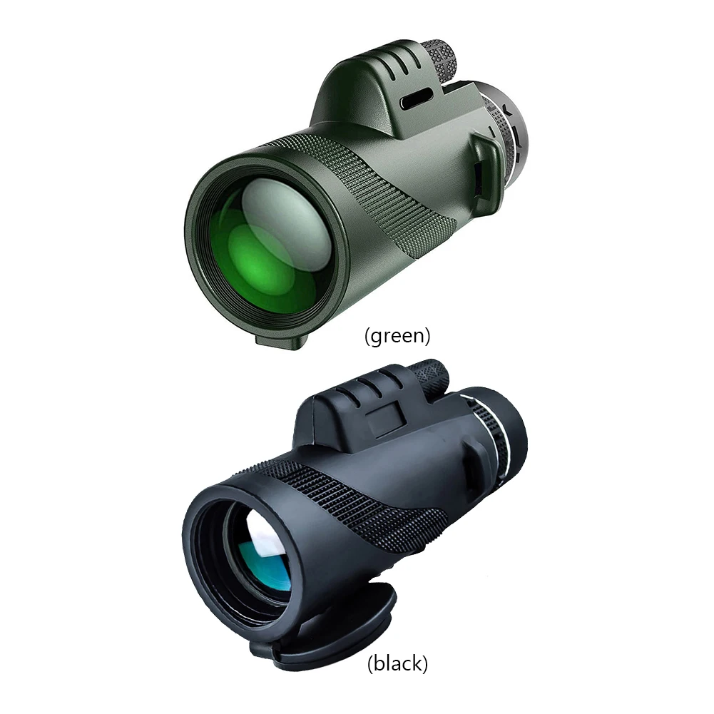 1. 80X100 HD Monocular:Full magnification and 50mm objective diameter monocular provide clear and bright images, enjoy the beauty at a distance, and give you the best view on your outdoor adventures. Perfect for adults and kids for bird watching, hunting, hiking, camping, traveling and more. 2. Higher Definition & Low Light Night Vision:The monocular adopts the latest optical technology, equipped with BAK-4 prism and multi-coated lens, which makes our monocular have excellent light transmittance and brightness, and the light transmittance is up to 99.9%. Plus, our night vision monoculars have night vision at low light levels to help you see things clearly in low light and give you an amazing viewing experience. 3. Comfortable & Convenient:Large magnification monocular, easy to use with one hand. Striped rubber armor adds friction and prevents slipping from your hands. The monocular also comes with a carrying strap. There is also a tripod connector at the bottom of the monocular for stable viewing when connected to a monocular tripod. Note that the tripod can be extended for stability, we recommend that you extend the tripod during use. 4. Widely Compatible with Smartphones & Easy To Install:HD Night Vision Monocular is equipped with the latest quick-aligning smartphone mounts and high-quality tripods. Adult Monoculars fit perfectly with most other Android smartphones on the market. The 80×100 monocular is easy to install and can give you HD images or videos to share with friends. 5. Exquisite Gift:You will get: 1 x Monocular,1 x Lanyard,1 x Phone Clip,1 x Silver Bracket,1 x Wipe,1 x Instruction . Monoculars are the perfect gift for women, men, children and outdoor enthusiasts. Specification: Note: