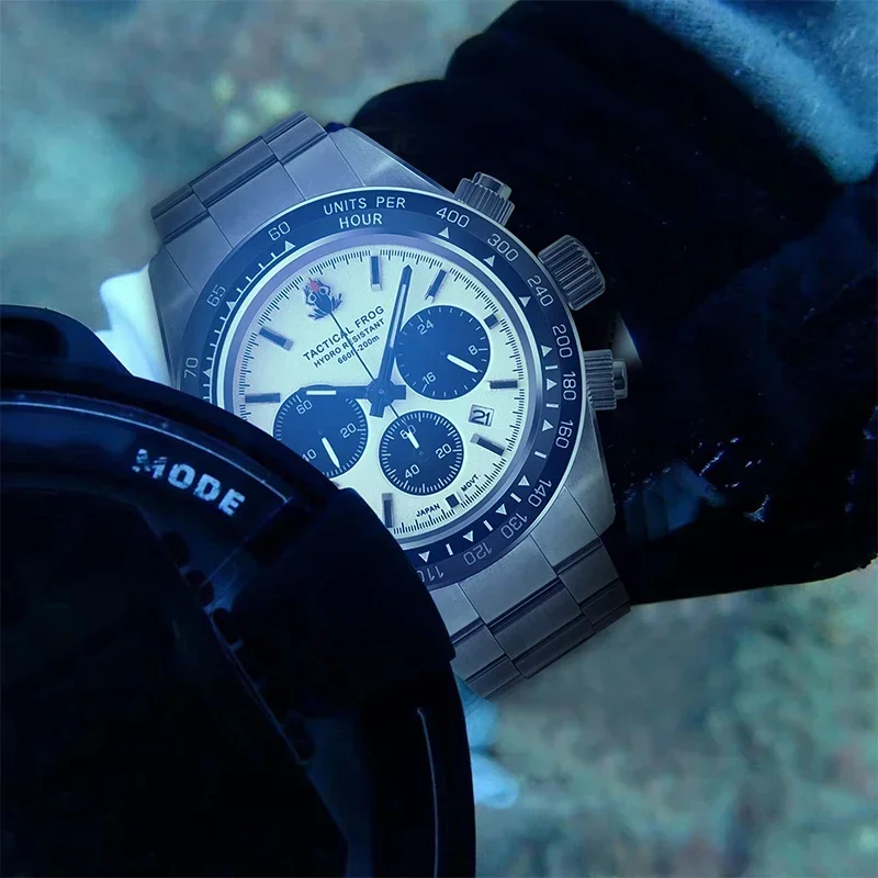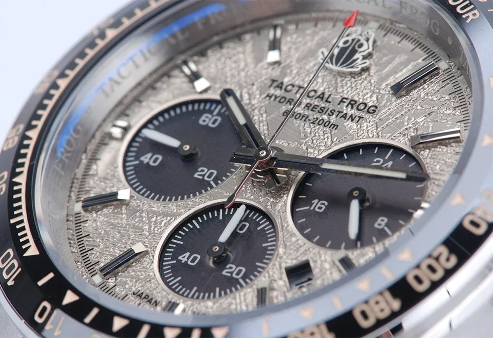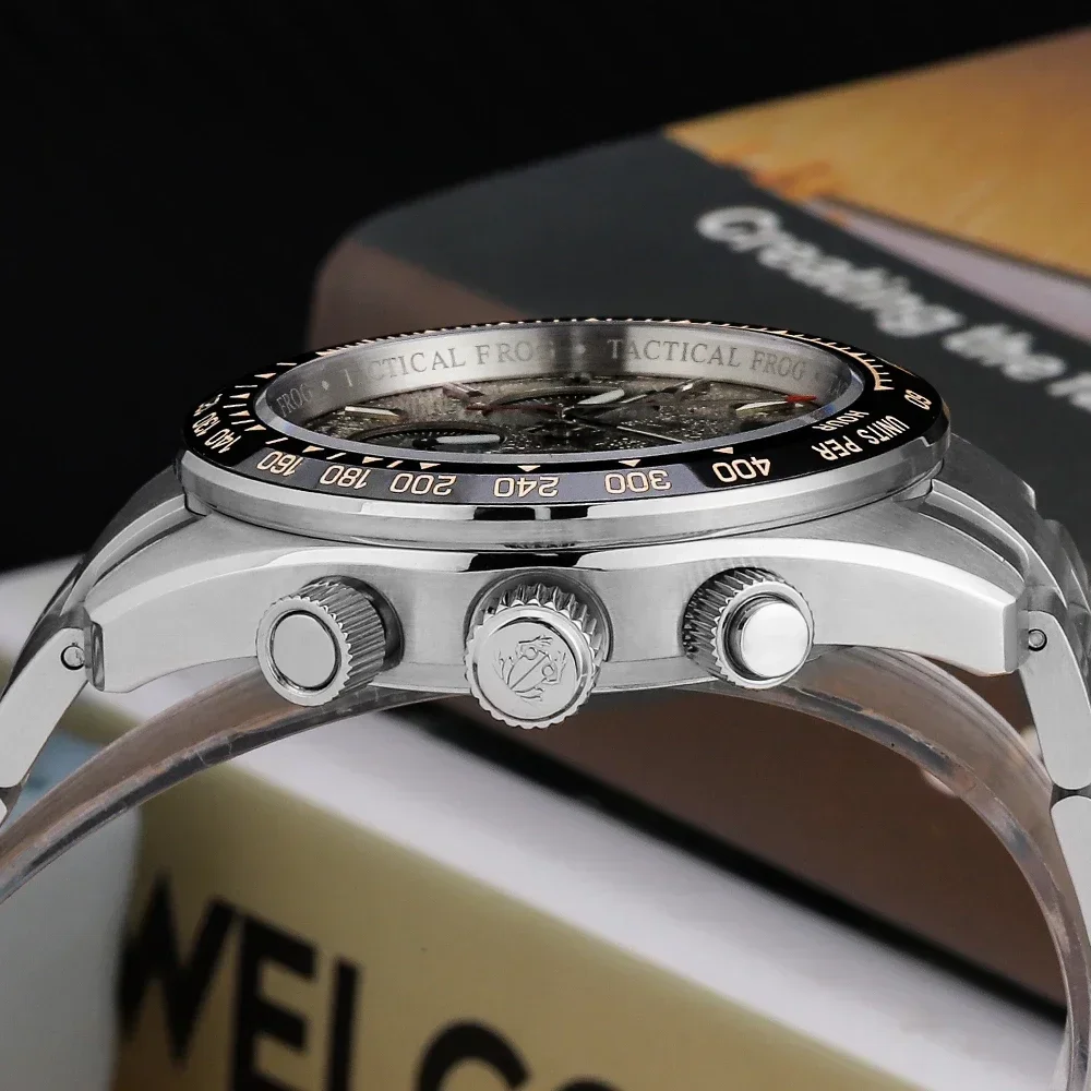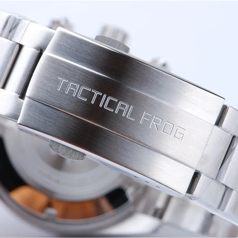 The Tactical Frog’s attention to detail is evident in its double-layer literal hydraulic process three-dimensional real nail dial and applied logo, adding depth and sophistication to its appearance.