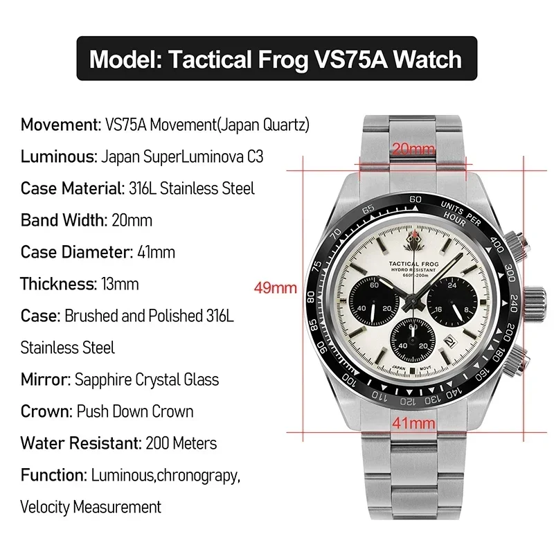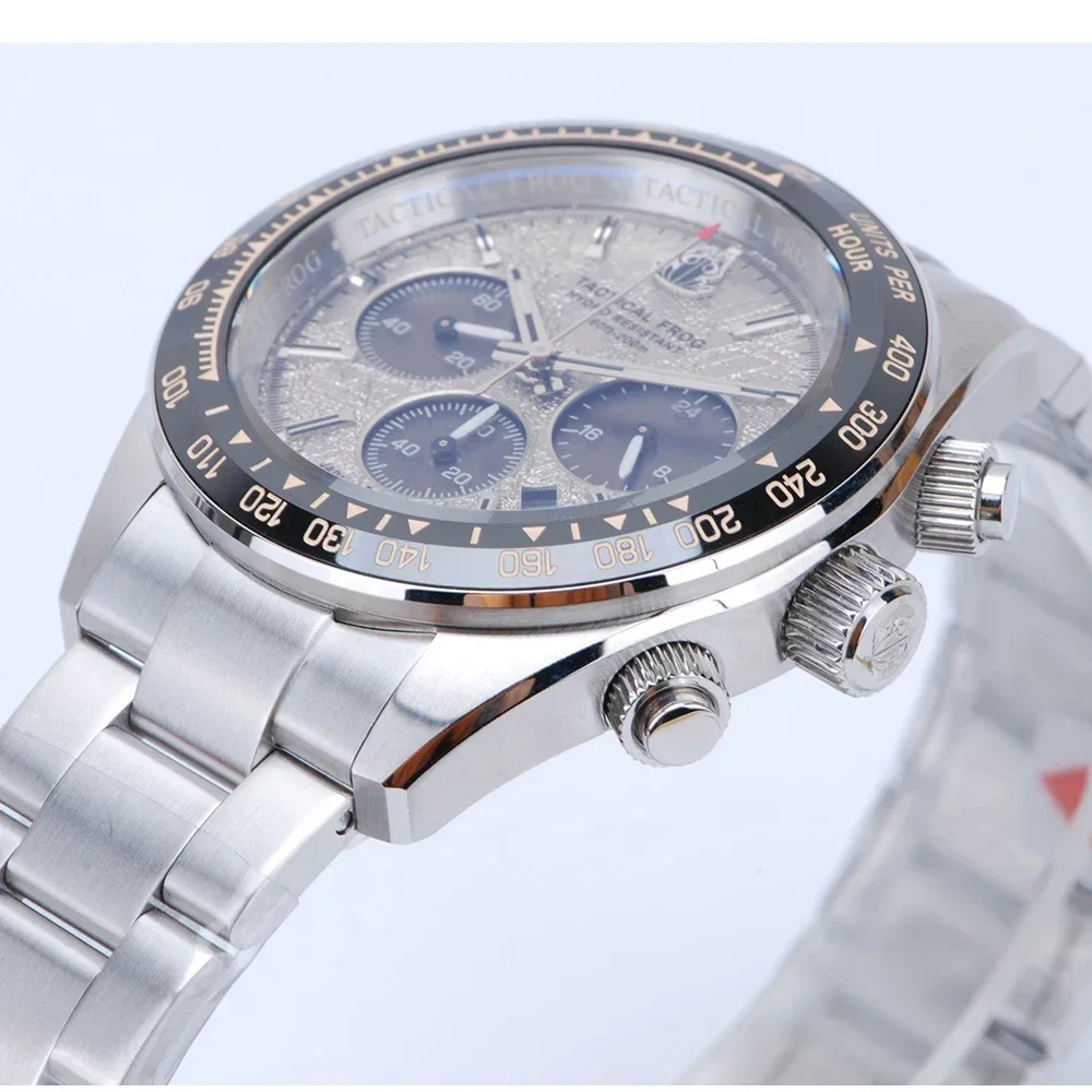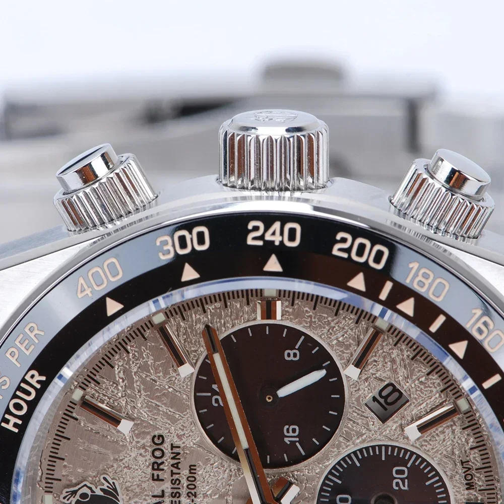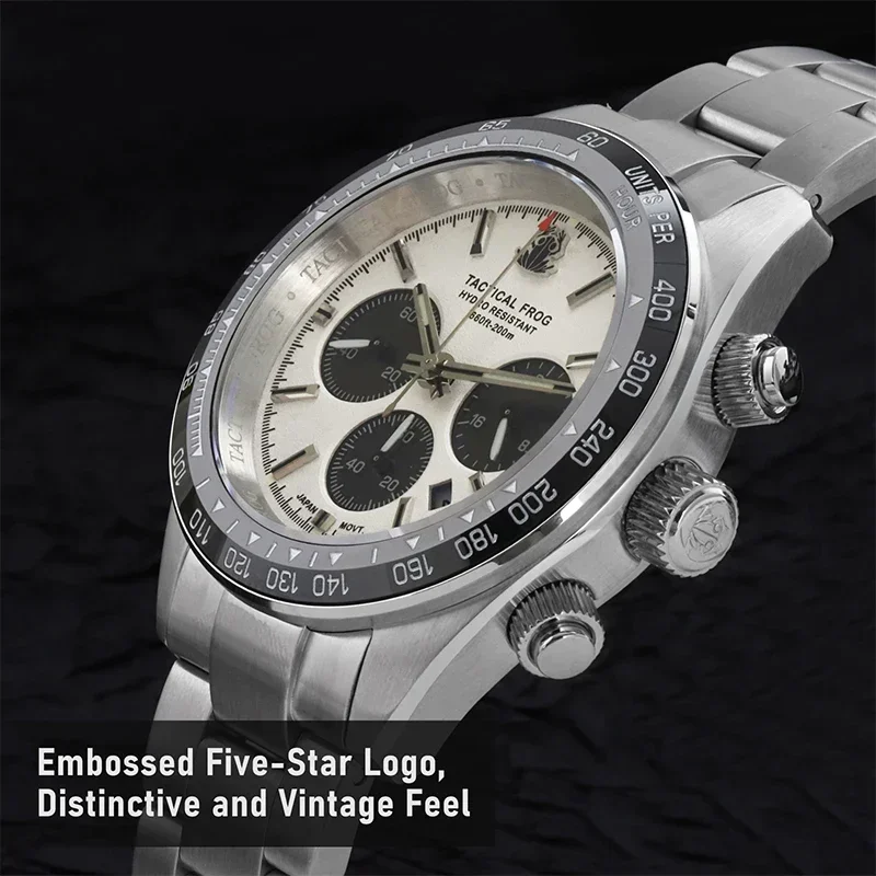 The Tactical Frog’s attention to detail is evident in its double-layer literal hydraulic process three-dimensional real nail dial and applied logo, adding depth and sophistication to its appearance.