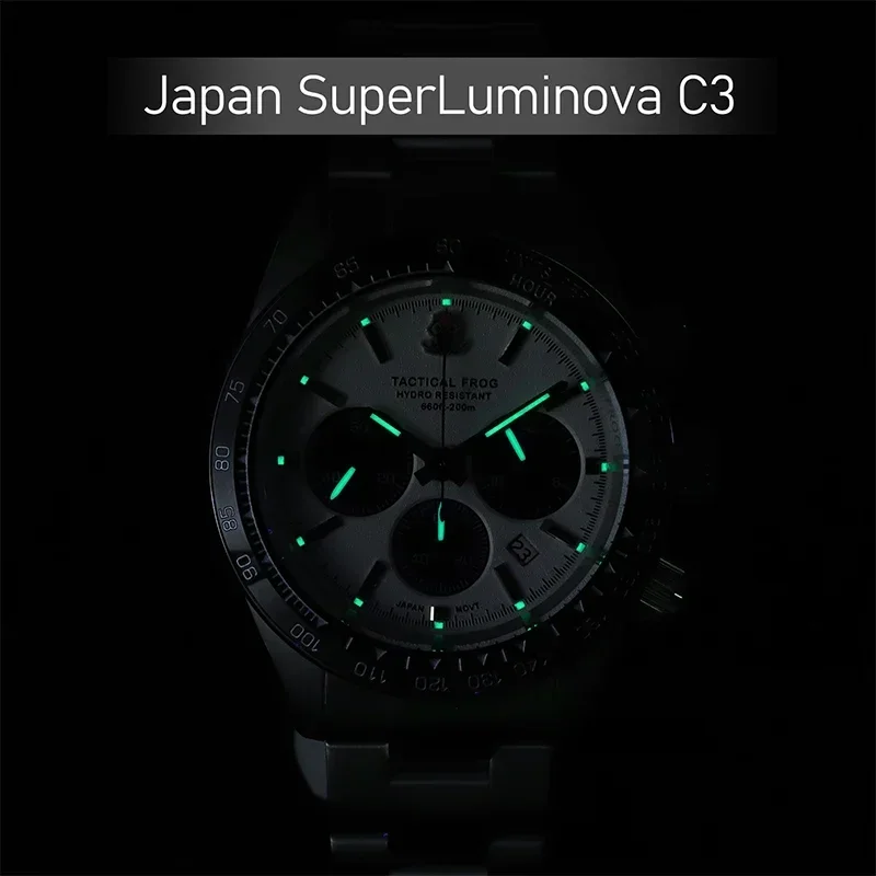 Luminous Display: Japan C3 Green Light for hands and markers, ensuring visibility in low-light conditions.