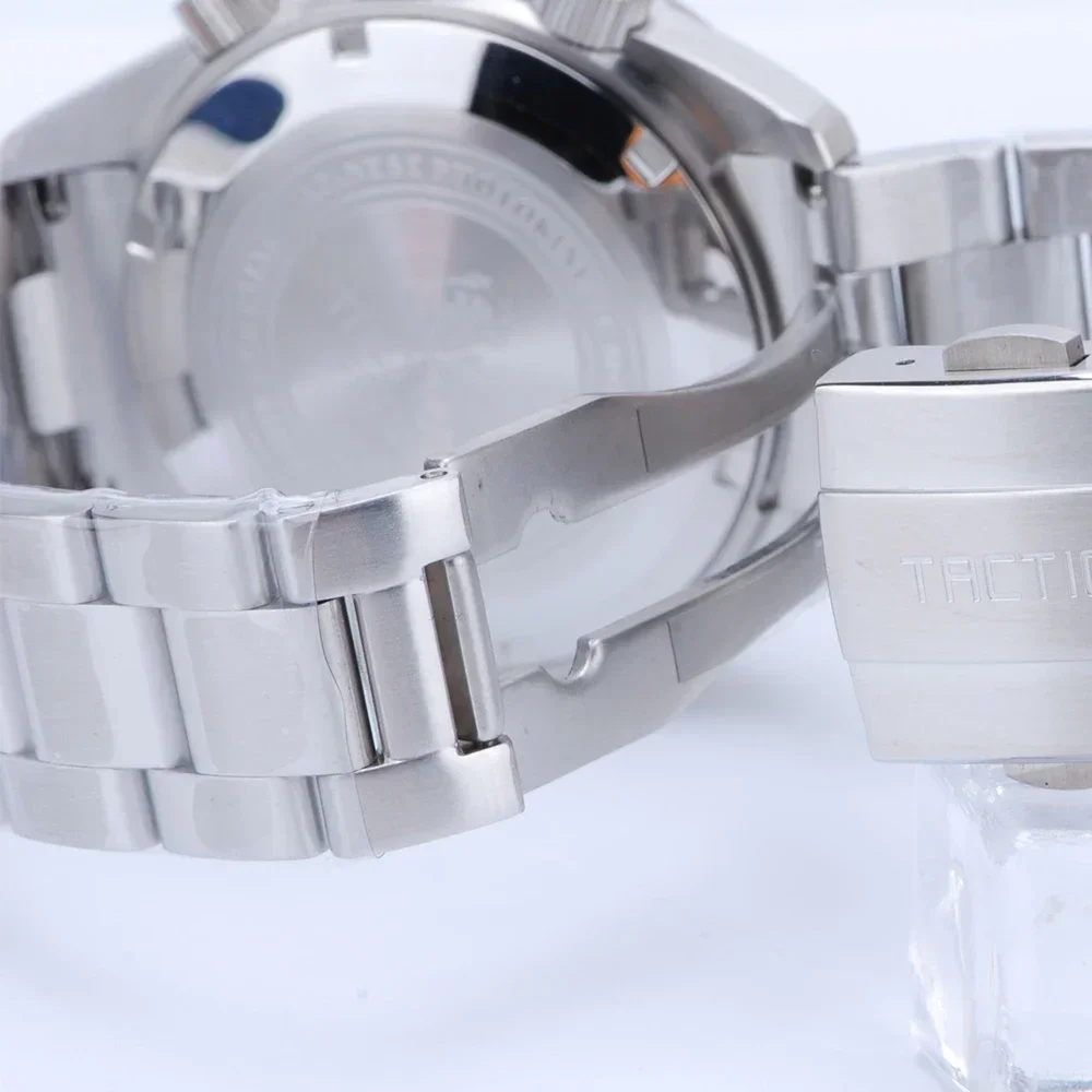 As a contender for the Best Tactical Watch title, it boasts a robust 316L stainless steel case and solid caseback, providing excellent protection against the elements.