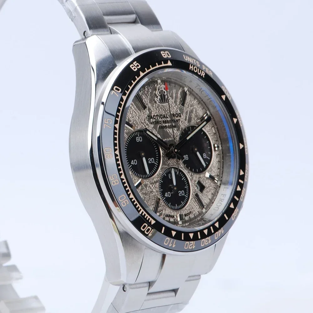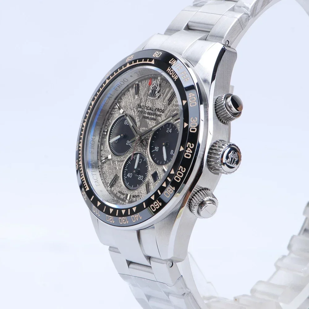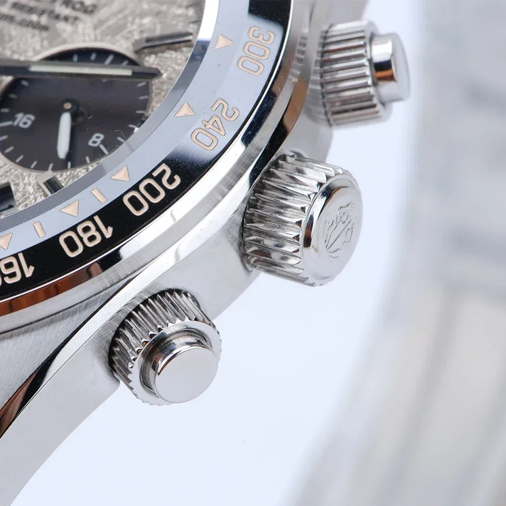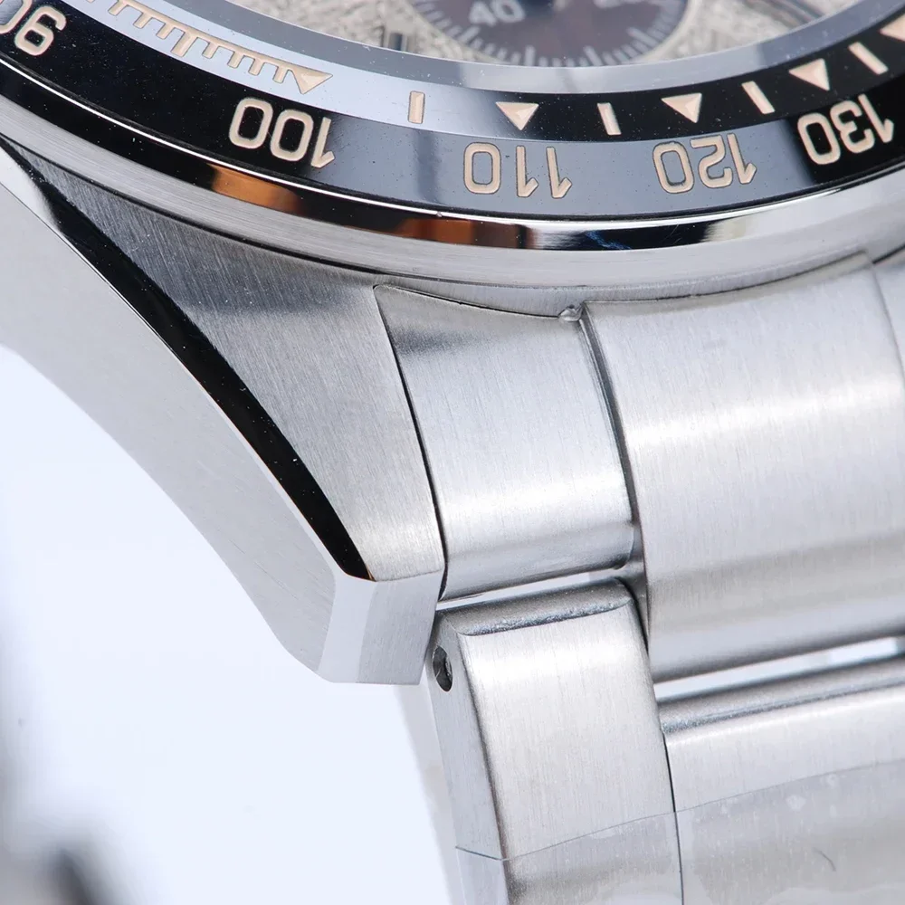 Ceramic Chronograph Bezel: Enhances both functionality and aesthetics.